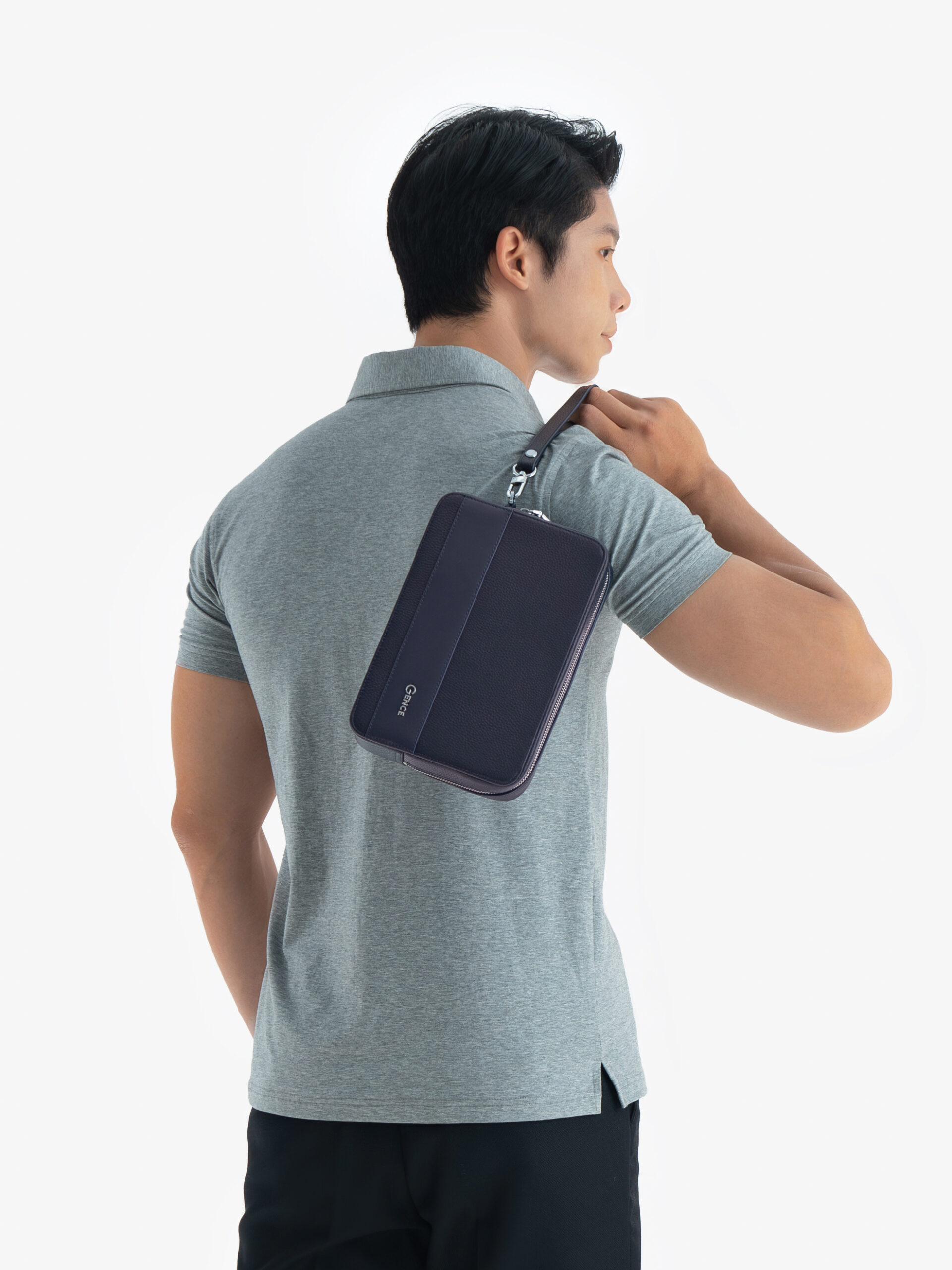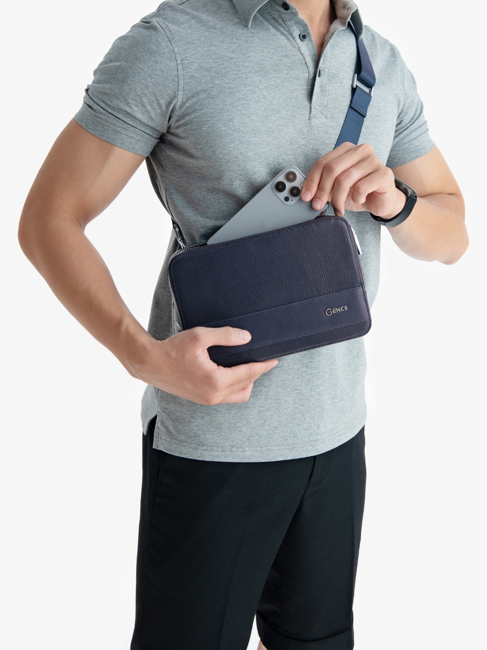 Túi cầm tay đeo chéo nam Gence da bò Togo TC01 Xanh